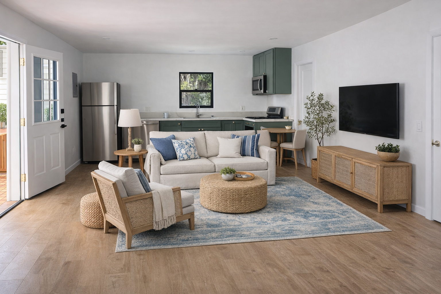 Fully furnished interiors are intentionally curated for simplicity and ease, allowing residents to settle in without the distractions of excess or clutter. Quality finishes, modern appliances, and well-appointed kitchens provide the practicality needed for everyday living, while soft textures and understated design elements reflect the relaxed character of Santa Barbara.